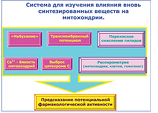На основании этих результатов была сформулирована концепция поиска новых нейропротекторов в ряду блокаторов МРТ и разработан ряд методов первичного скрининга веществ, позволяющий оценить способность веществ увеличивать устойчивость митохондрий к индукторам МРТ и потенциальную токсичность препарата, т.е. влияние на энергетический потенциал митохондрий.