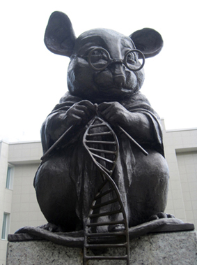 Памятник лабораторной мыши в Новосибирском Академгородке рядом с Институтом цитологии и генетики СО РАН (фото Елены Бовиной) |