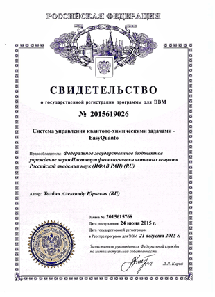 Получено свидетельство о государственной регистрации (№ 2015619026, заявитель и правообладатель ФГБУН ИФАВ РАН, автор – профессор РАН Толбин Александр Юрьевич).